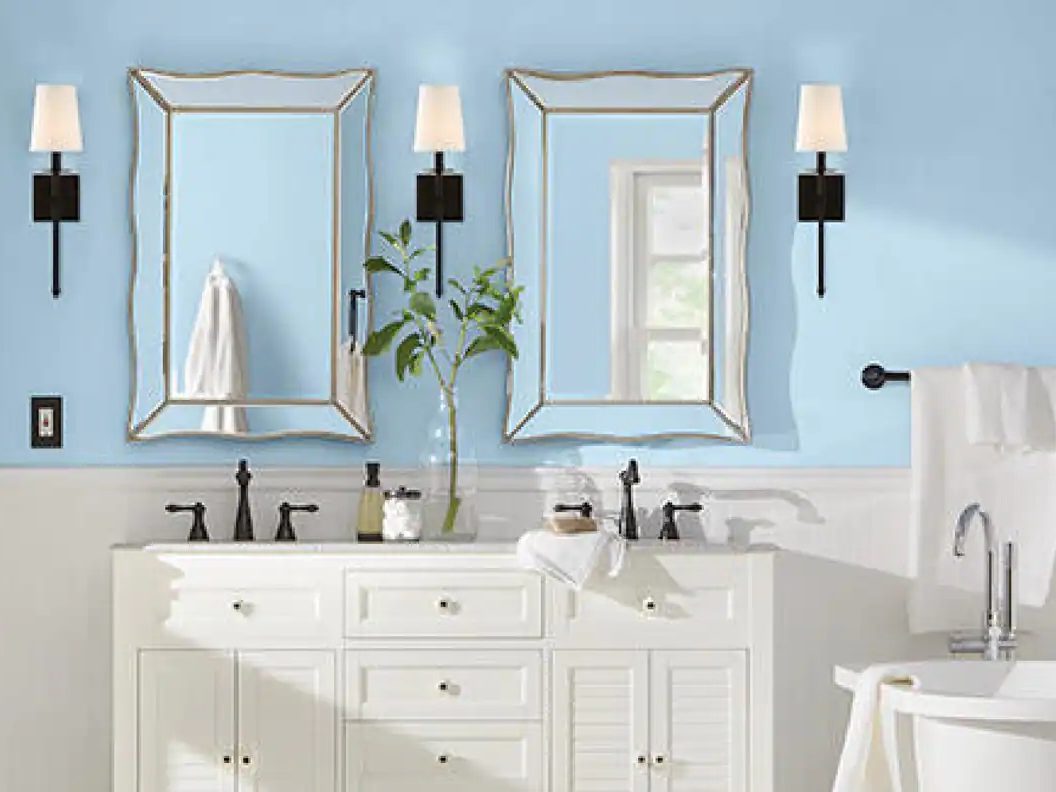 In spa designs, the use of calming aqua or pale blue tones is intentional for a reason. To enhance a small bathroom, opt for a soothing color palette featuring light colors and cool bluish tones. When it comes to metallic items, choose shiny fixtures and crisp white finishes. This combination not only adds a serene touch but also creates a visually appealing and relaxing atmosphere, making your small bathroom feel more spacious and inviting.