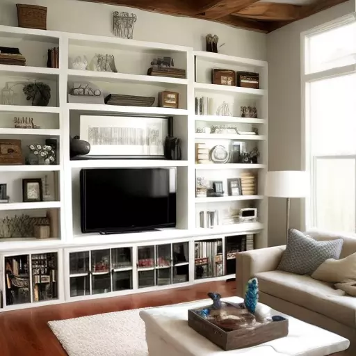 Built-in shelving can be both functional and stylish in a living room. Use the shelves to display books, decorative items, and family photos. You can also incorporate storage baskets or boxes to keep clutter at bay and create a polished look.