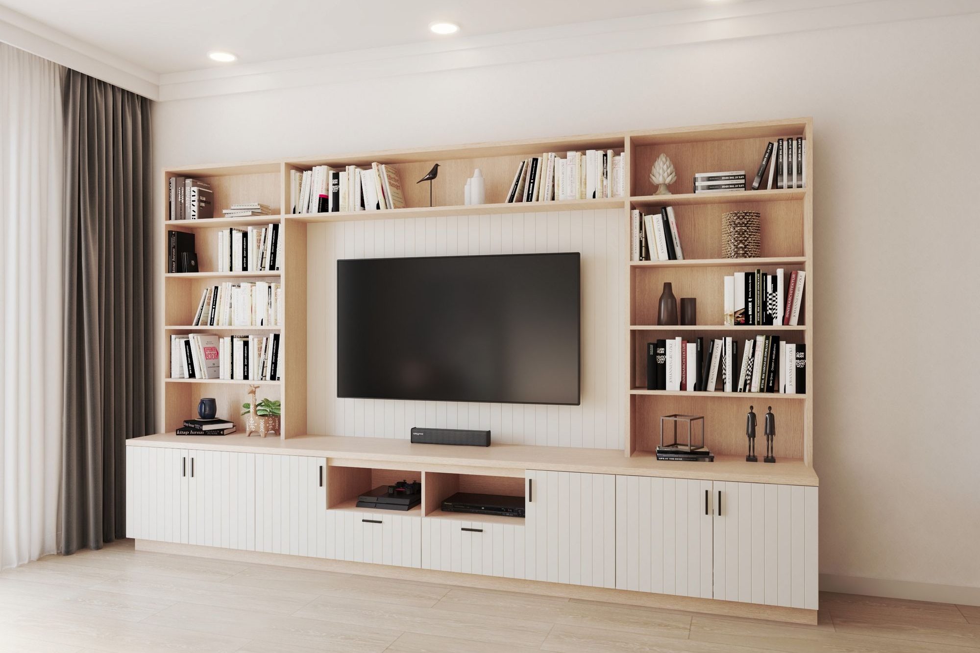 A bedroom TV cabinet with built-in bookshelf is ideal for reading and TV. It combines entertainment with display space. Customize with plants, artwork, and décor. Add interesting wallpapers or laminates for style.