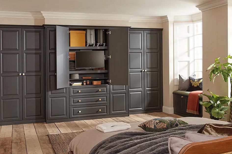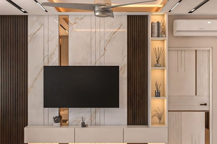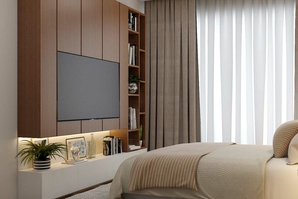 A TV cabinet with a luxurious vibe is essential for bedroom floor space. Paired with a walk-in wardrobe, it optimizes storage and keeps the room clutter-free, earning compliments from guests.