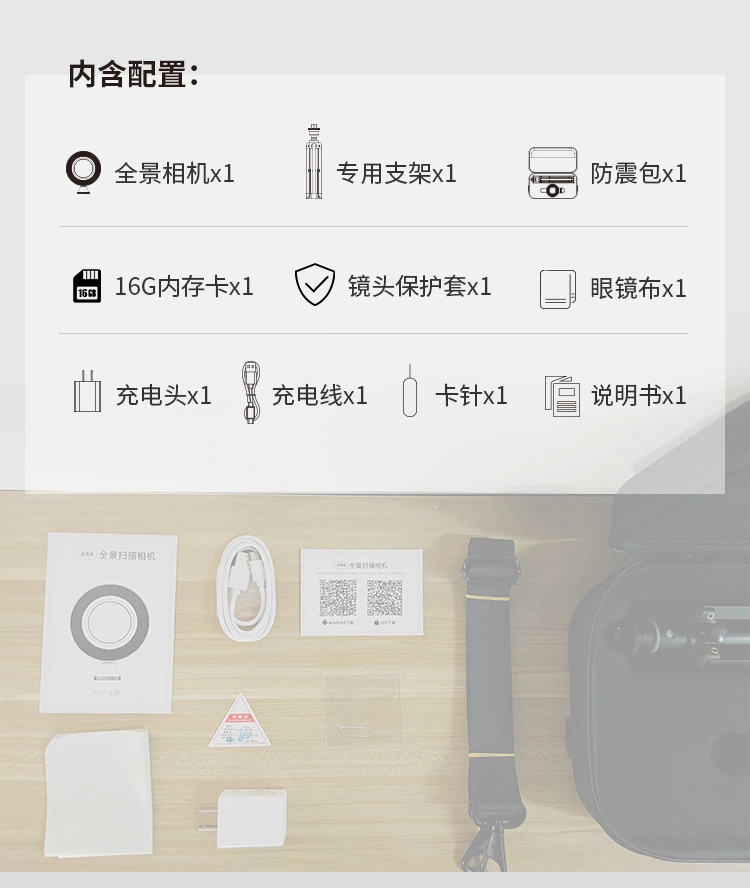 * Camera x 1 * Tripod x 1 * Bag x 1 * 16G Memory Card x 1 * Camera Cover x 1 * Charger x 1 * Cable x 1 * Cleaning Cloth x 1 * Needle x 1 * Handbook x 1